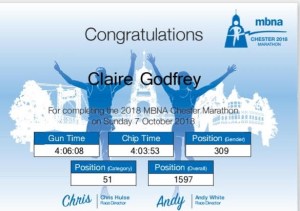 2018 – Chester Marathon – 4 hours 3 mins