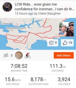 2019 – Long Course Weekend Tenby – swim 2.4 miles and Bike 112 miles