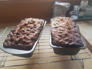 Homemade Bara Brith equals 15g – 20 g of medium release carbohydrate per thin slice. I slice it up cover each individual slice in foil and put in the freezer ready to take out for bike rides.